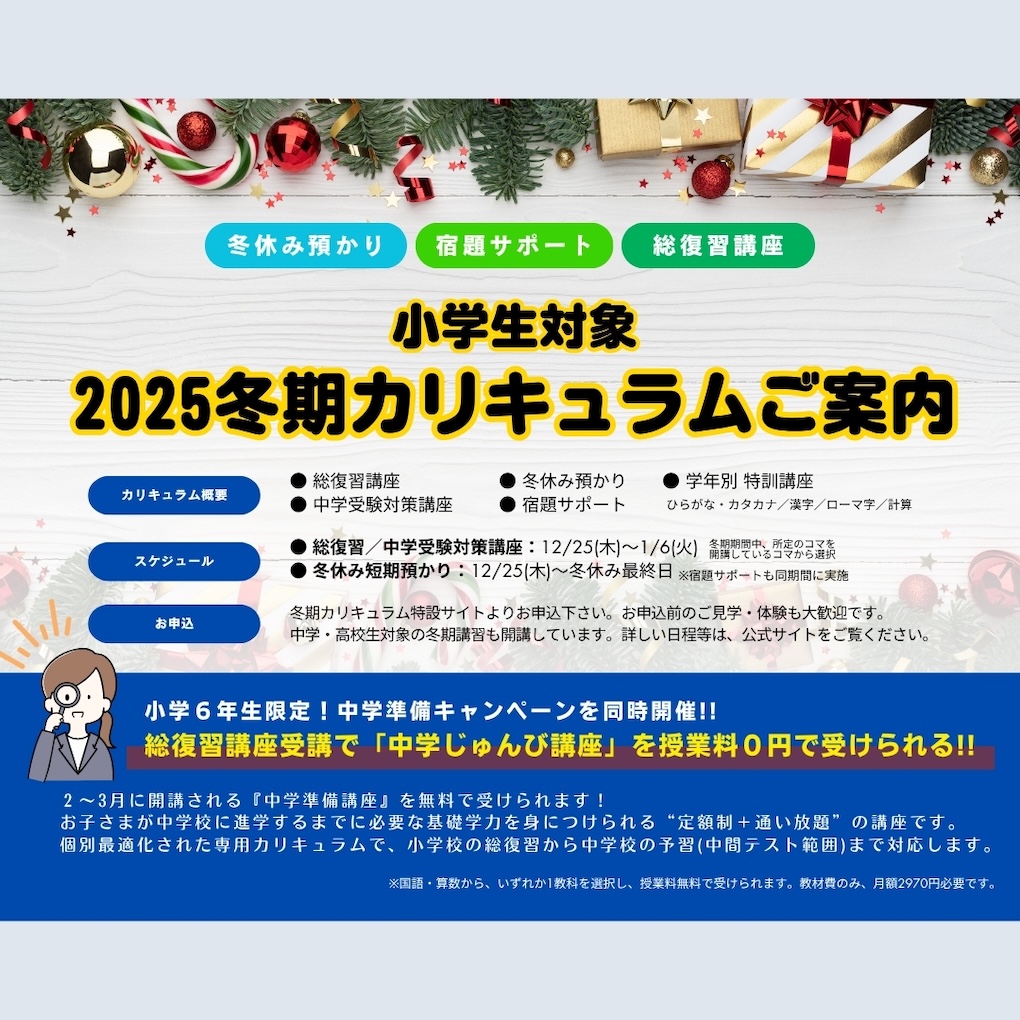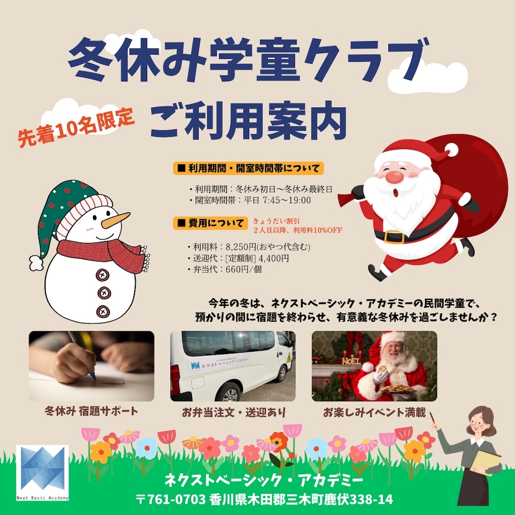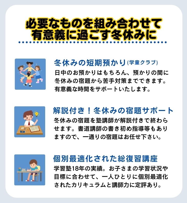 【学童クラブ】2025年度 冬休み短期利用(冬休み初日〜最終日まで)