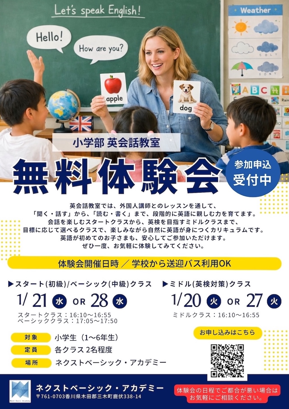 【参加申込】英会話教室(ベーシッククラス) 無料体験会(2026年1月21日)