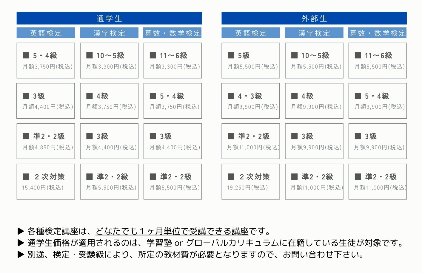 ※ 検定対策講座は、1ヶ月単位で受講できます。